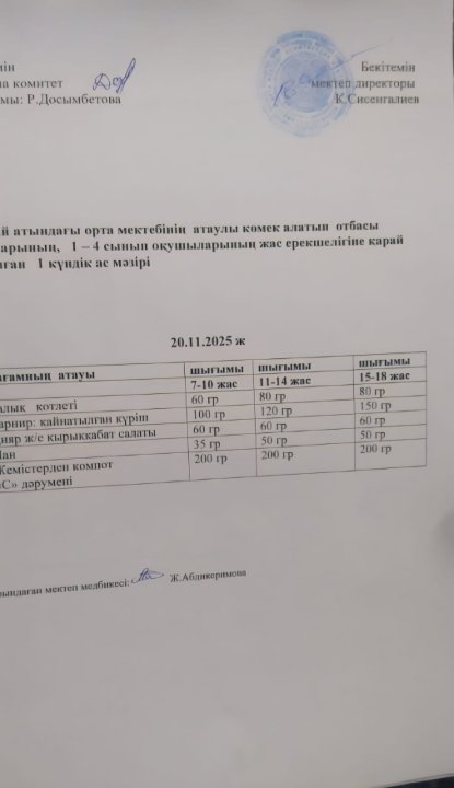13 январь 2025 Ас мәзірі