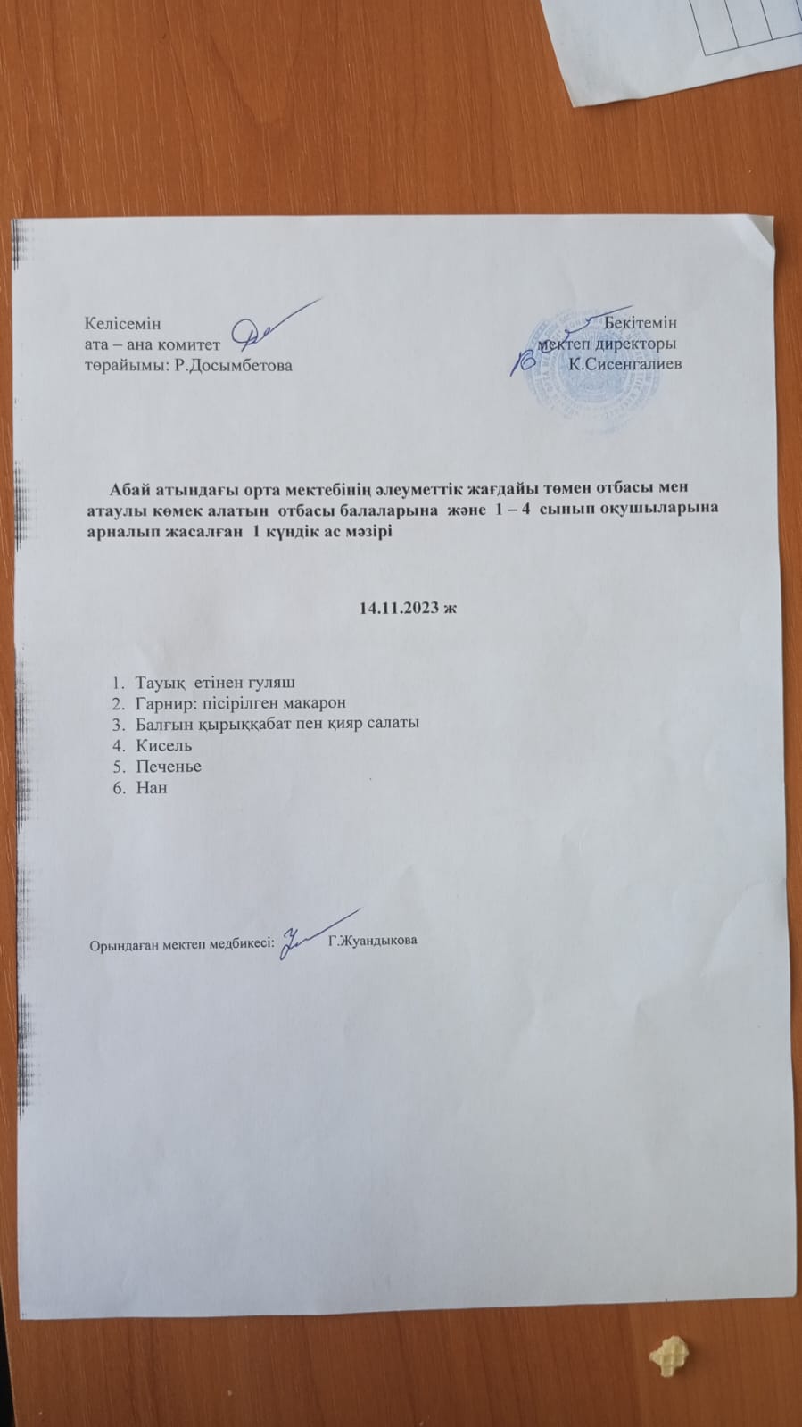17 октябрь 2022 17 қазан "Ас мәзірі"