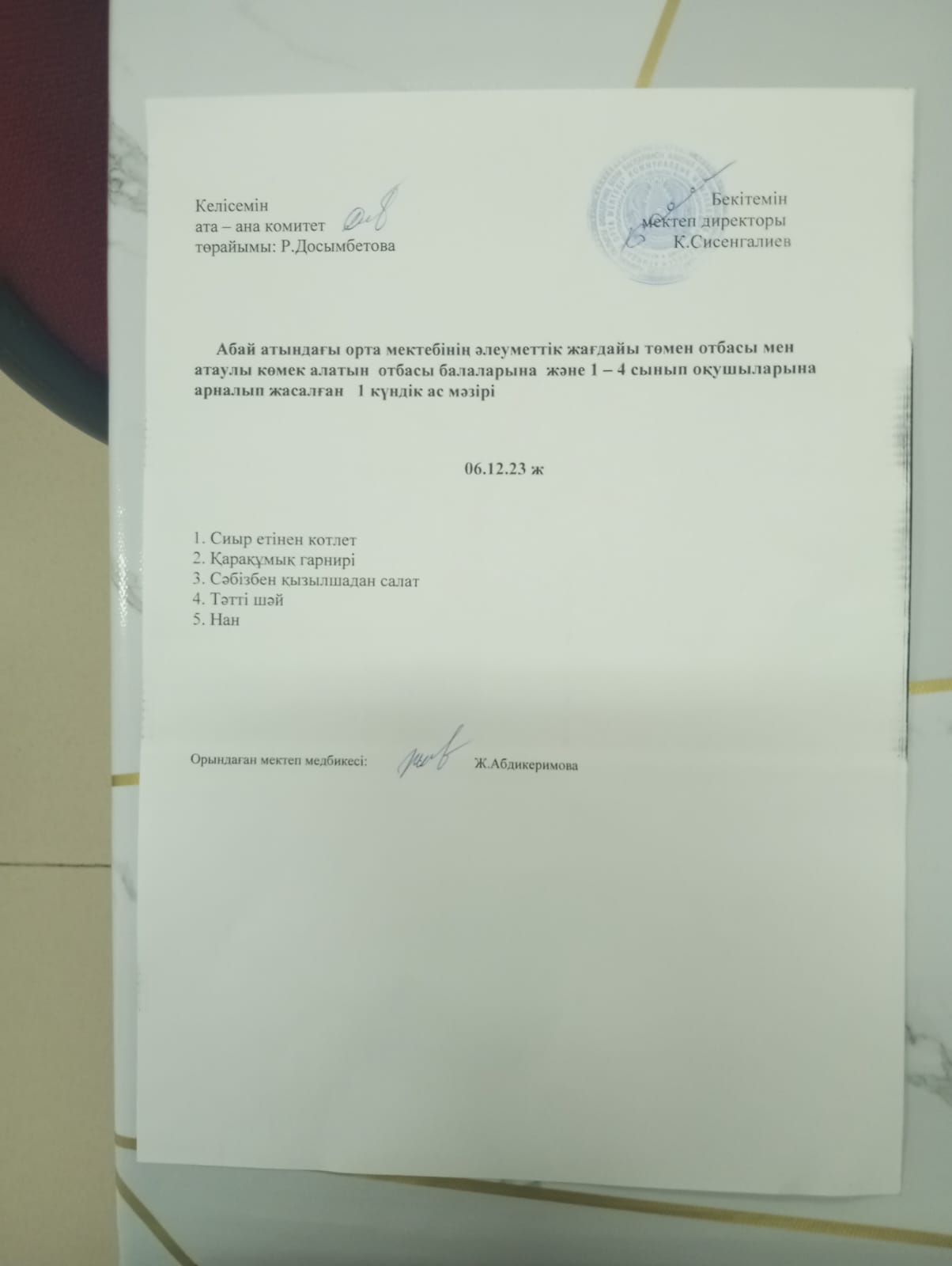 17 октябрь 2022 17 қазан "Ас мәзірі"