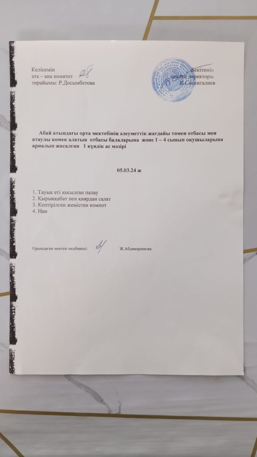 19 октябрь 2022 19 қазан "Ас мәзірі"